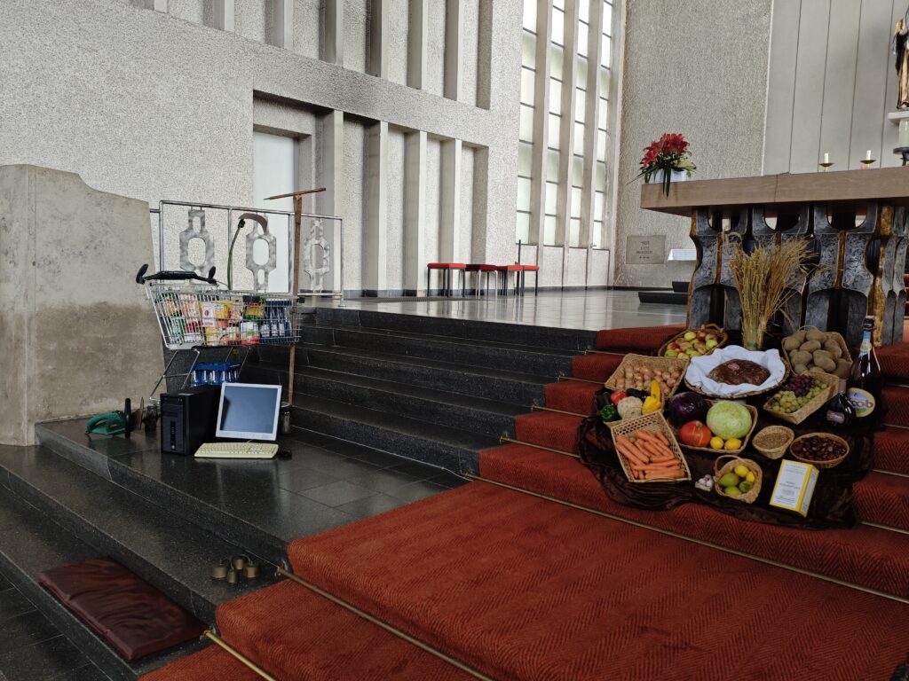 Der moderne Erntedankaltar macht sichtbar, wie sehr sich unsere Lebenswelt verändert hat – und dass Dankbarkeit auch in der heutigen technisierten Zeit ihren festen Platz hat. So wurde das Erntedankfest in St. Elisabeth zu einem Zeichen dafür, dass alter Glaube und moderne Welt sehr wohl zusammengehören.