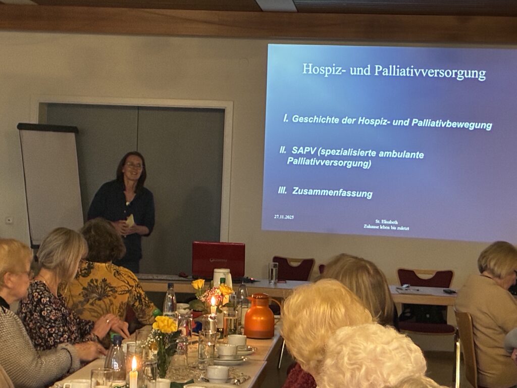 Die beiden Vorsitzenden des Frauenbundes, Christine Hüttner und Edith Weinhart, freuten sich zusammen mit der Leiterin der Senioren St. Elisabeth, Margit Konze, über den zahlreichen Besuch und hießen als Referentin die ärztliche Leiterin der Spezialisierten Ambulanten Palliativ-Versorgung (SAPV) Waldnaab, Frau Dr. Margarete Pickert, willkommen.