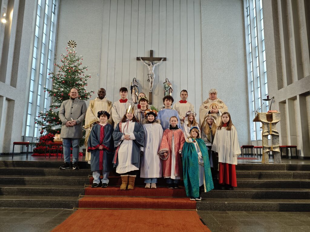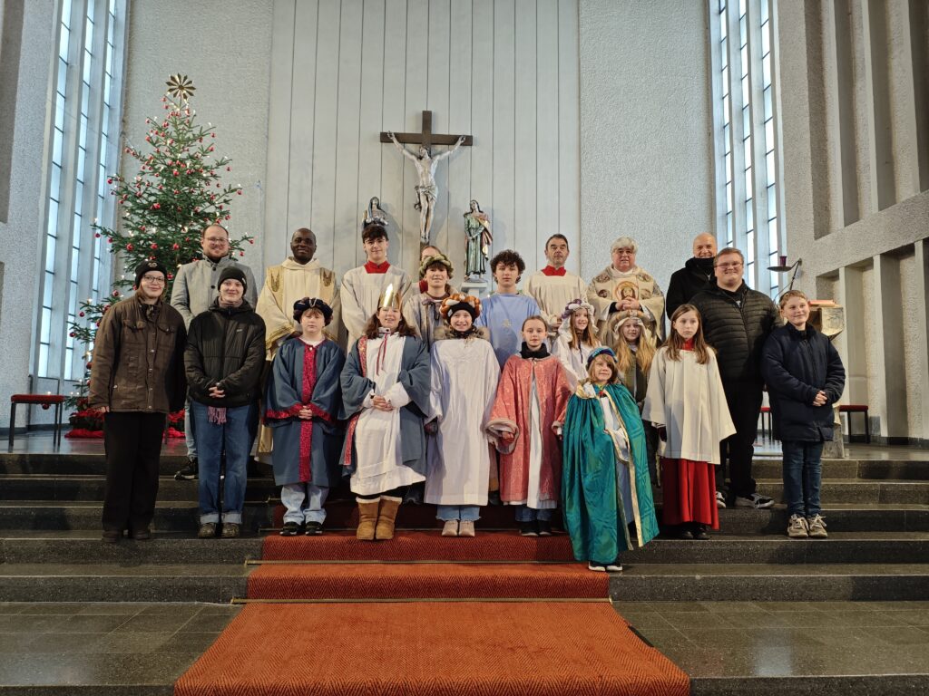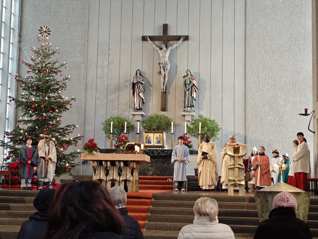 Mit dem Besuch der Sternsinger bekam die Heilige Messe am Dreikönigstag um 10.30 Uhr einen besonderen Akzent. Die Sternsinger feierten den Gottesdienst gemeinsam mit der Gemeinde mit und übernahmen auch den Ministrantendienst in ihren Sternsingergewändern.